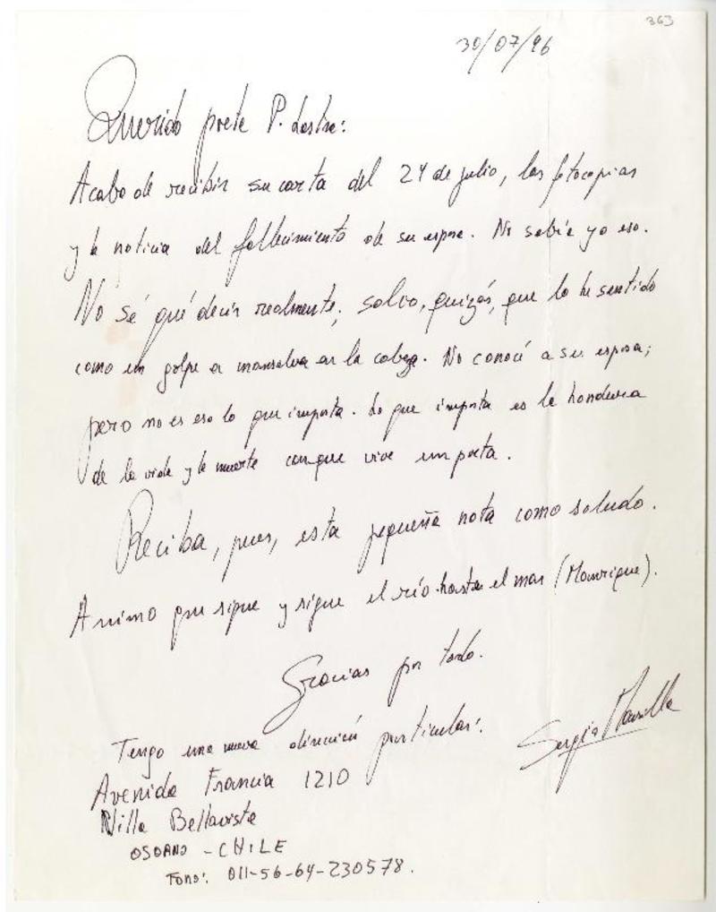 Osorno, Chile [a] Pedro Lastra Carta, 30 de junio 1996, [manuscrito] Sergio Mansilla Torres.