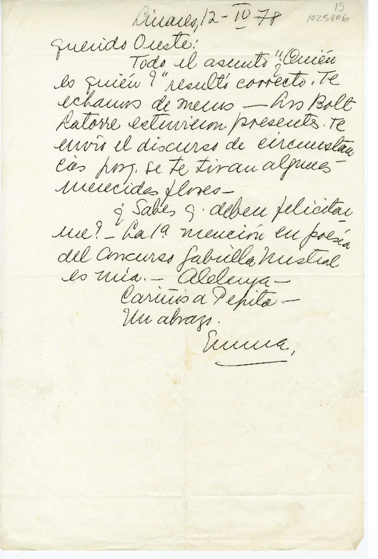 [Carta] 1978 abril 12, Linares, Chile [a] Oreste Plath [manuscrito] Emma Jauch.