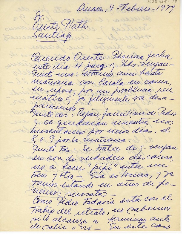 [Carta] 1979 febrero 4, Linares, Chile [a] Oreste Plath [manuscrito] Emma Jauch.