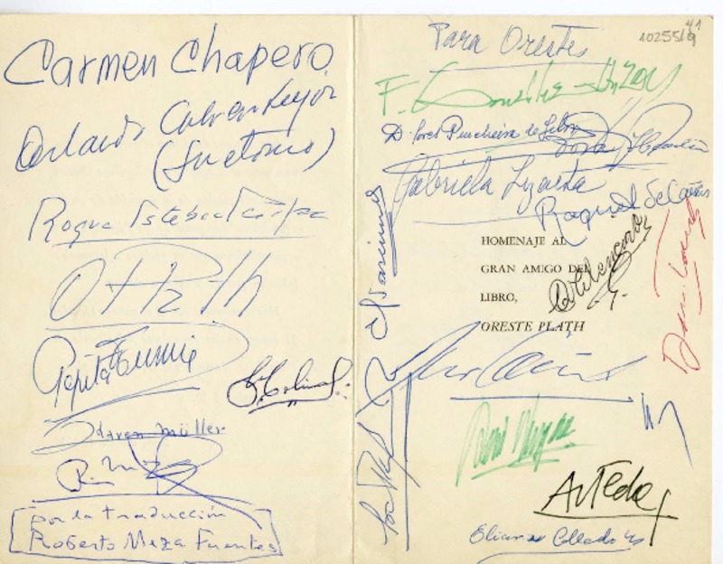 Agrupación Amigos del Libro (Chile) - Correspondencia - Autores chilenos - Manuscritos chilenos - Plath, Oreste
