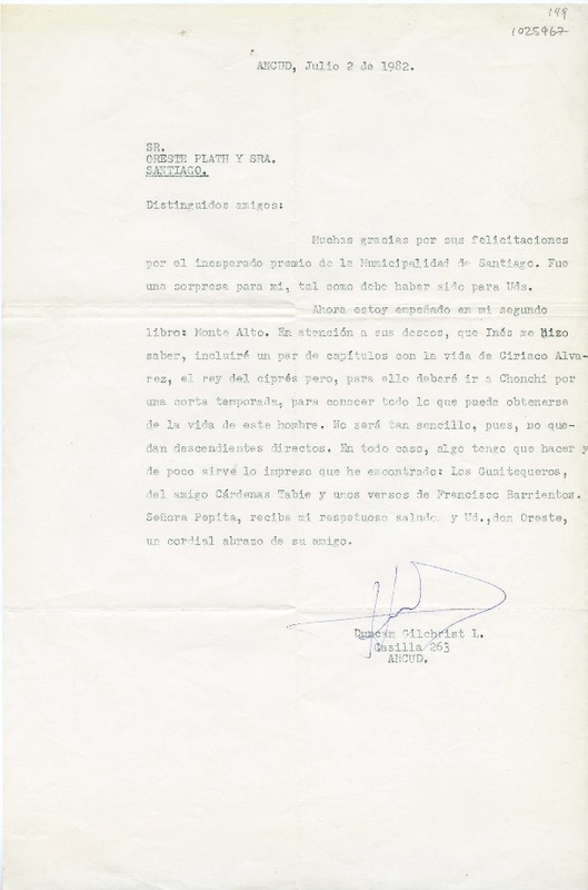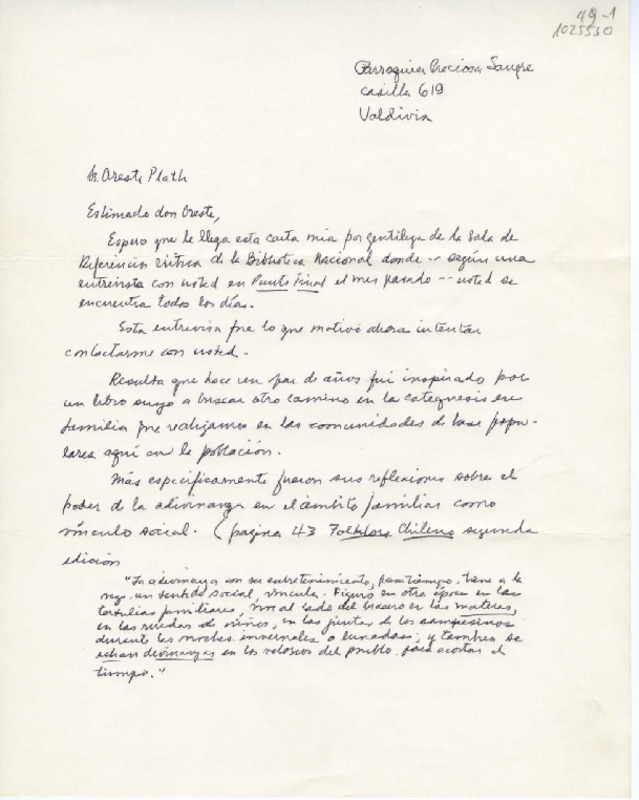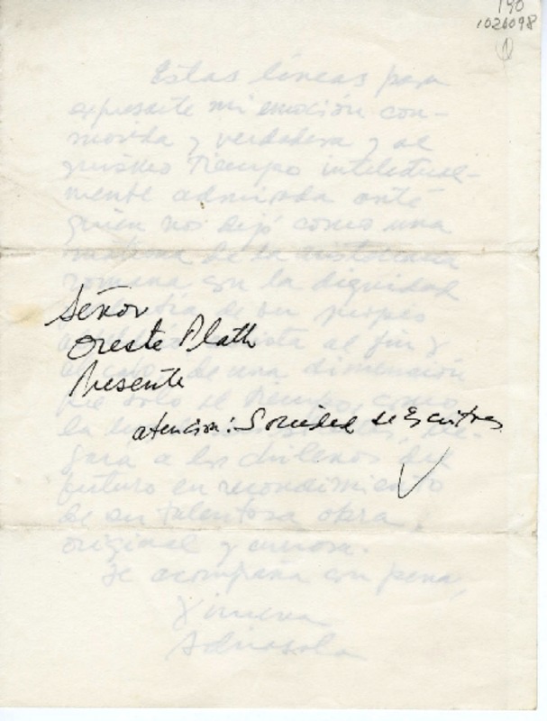 Mesa Seco, Manuel Francisco - Plath, Oreste - Manuscritos chilenos - Autores chilenos - Correspondencia