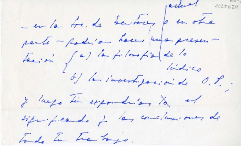 Onfray, Fernando - Plath, Oreste - Manuscritos chilenos - Autores chilenos - Correspondencia