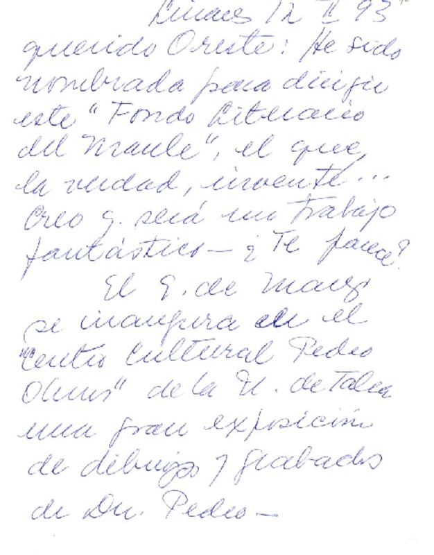 [Carta] 1993 febrero 12, Linares, Chile [a] Oreste Plath [manuscrito] Emma Jauch.