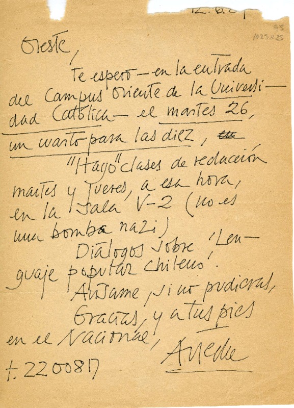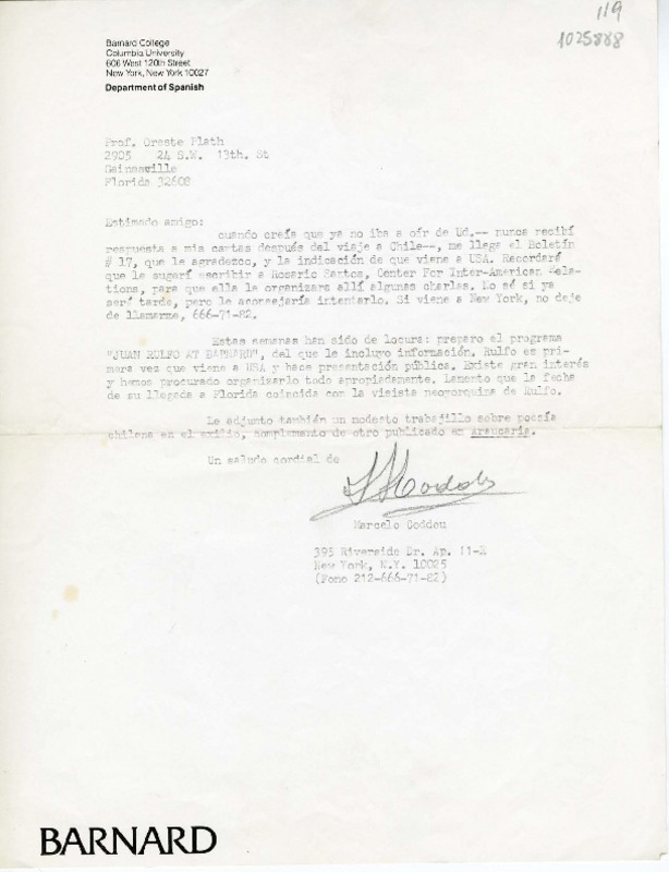 Coddou, Marcelo - Correspondencia - Autores chilenos - Manuscritos chilenos - Plath, Oreste