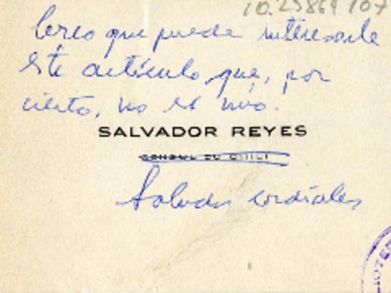 Correspondencia - Reyes, Salvador - Plath, Oreste - Manuscritos chilenos - Autores chilenos