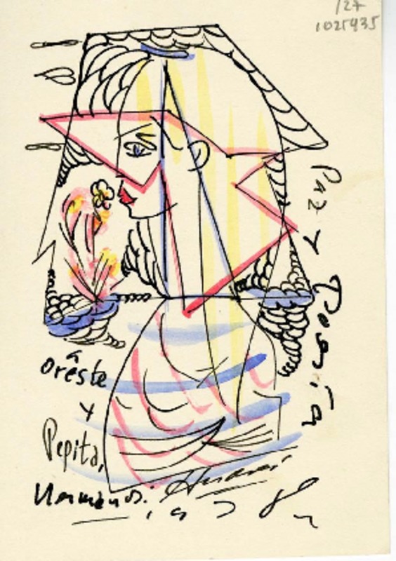 [Tarjeta] 1945, Río de Janeiro [a] Gabriela Mistral [manuscrito] Oreste Plath.
