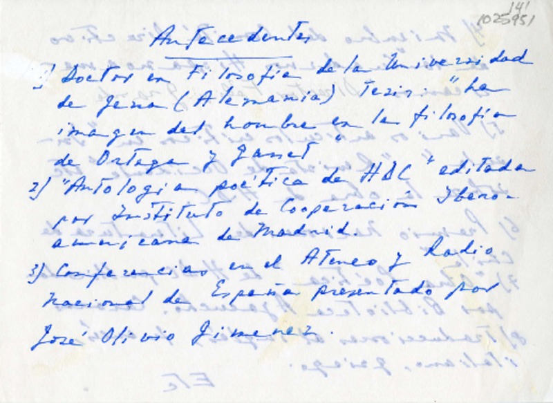 Castillo de Lucas, Antonio - Correspondencia - Autores chilenos - Autores españoles - Plath, Oreste - Manuscritos españoles