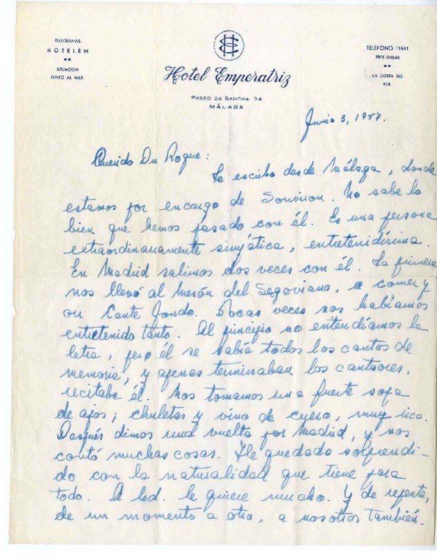[Carta] 1957 julio 3, Málaga, España [a] Roque Esteban Scarpa [manuscrito] Carlos Ruiz-Tagle.