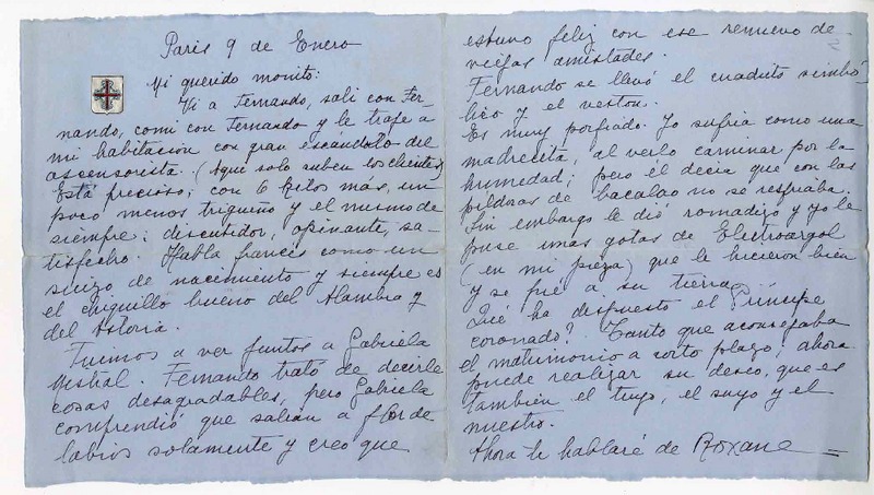 [Carta] 1927 enero 9 y 10, París, Francia [a una amiga "Monito"] [manuscrito] Elvira Santa Cruz Ossa (Roxane).