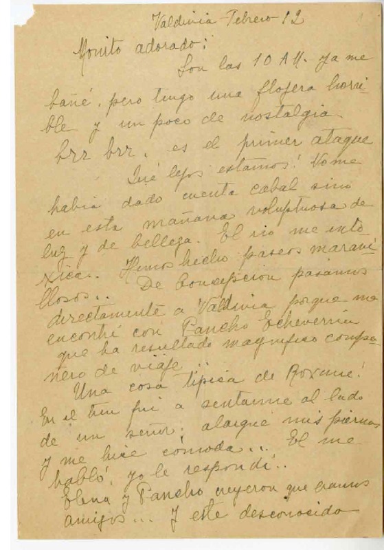 [Carta] 1912 febrero, Valdivia, Chile [a una amiga "Monito"] [manuscrito] Elvira Santa Cruz Ossa (Roxane).
