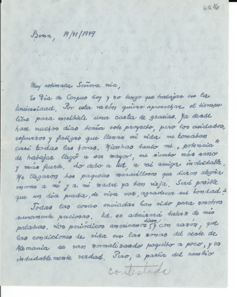 [Carta] 1949 jun. 19, Bonn, [Alemania] [a] [Gabriela Mistral] [manuscrito] Hans Flasche.