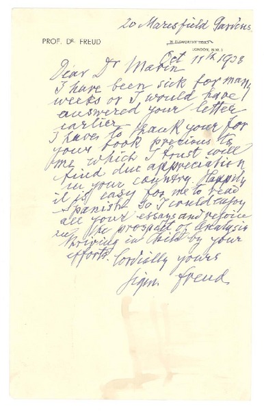 [Carta] 1938 octubre 11, Londres, Inglaterra [a] Juan Marín [manuscrito] Sigmund Freud.