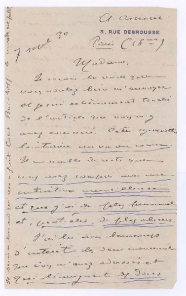 [Carta] 1930 sep. 7, París, Francia [a] Magdalena Petit [manuscrito] Alexandre Arnoux.