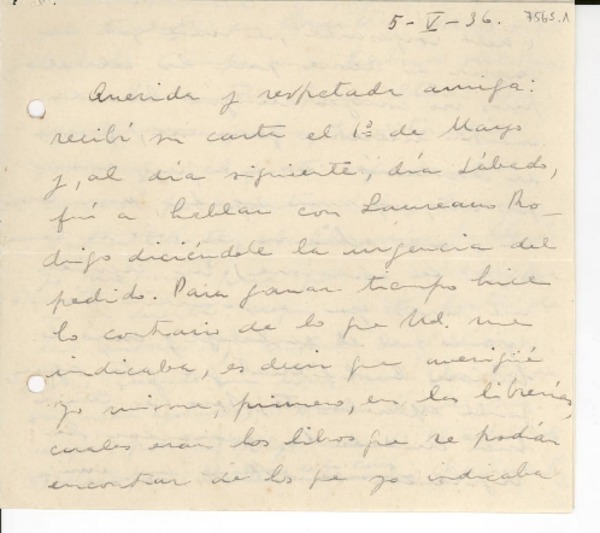 [Carta] [19]36 mayo 5, [Chile?] [a] [Gabriela Mistral] [manuscrito] Magdalena Petit.