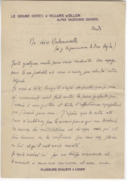 [Carta] 1960?, Vaud, Suiza [a] Magdalena Petit [manuscrito] Jacques Kayser.