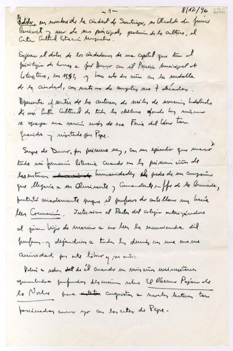 Navarro Ceardi, Arturo - Autores chilenos - Donoso, José - Discursos chilenos - Manuscritos chilenos