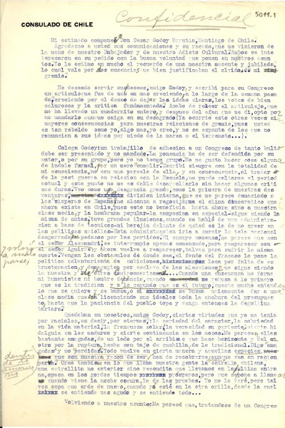 Autores chilenos - Godoy Urrutia, César - Mistral, Gabriela - Manuscritos chilenos - Correspondencia