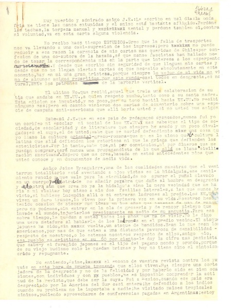 Eyzaguirre, Jaime - Correspondencia - Mistral, Gabriela - Manuscritos chilenos