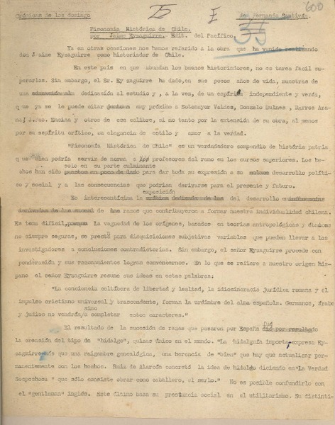 Fisonomía histórica de Chile - Manuscritos chilenos - Eyzaguirre, Jaime - Reseñas de libros