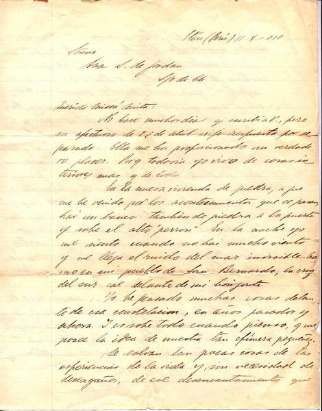 [Carta] 1910 may. 11, Eten, Perú [a] Anita vda. de Jordán [manuscrito] Augusto D'Halmar.