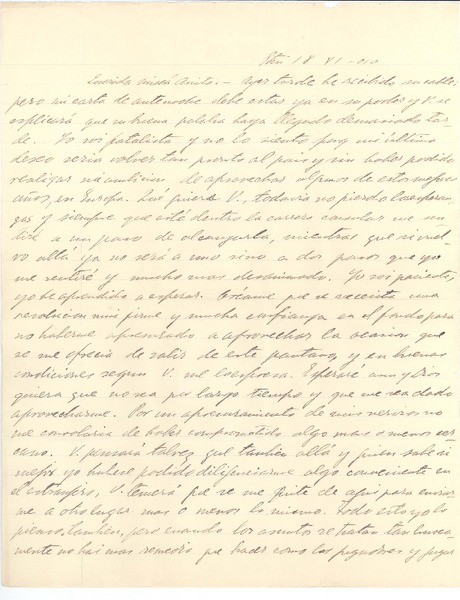 [Carta] 1909 nov. 30, Eten, Perú [a] Anita vda. de Jordán [manuscrito] Augusto D'Halmar.