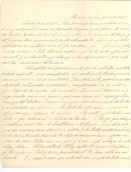 [Carta] 1910 jun. 16, Eten, Perú [a] Anita vda. de Jordán [manuscrito] Augusto D'Halmar.
