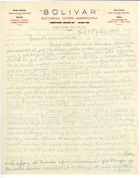 [Carta] 1940 jul. 25, Valparaíso, Chile [a] Anita vda. de Jordán [manuscrito] Augusto D'Halmar.