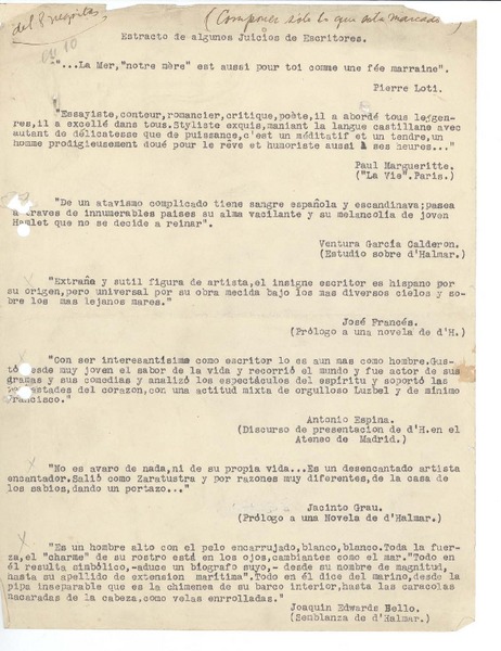Manuscritos chilenos - Artículos chilenos - D'Halmar, Augusto