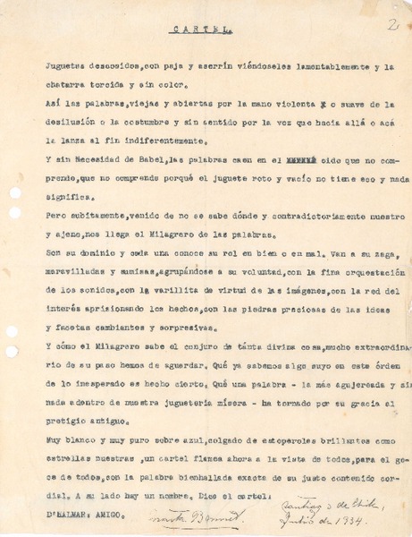 George-Nascimento, M. Carlos - Correspondencia - Autores chilenos - Manuscritos chilenos - D'Halmar, Augusto