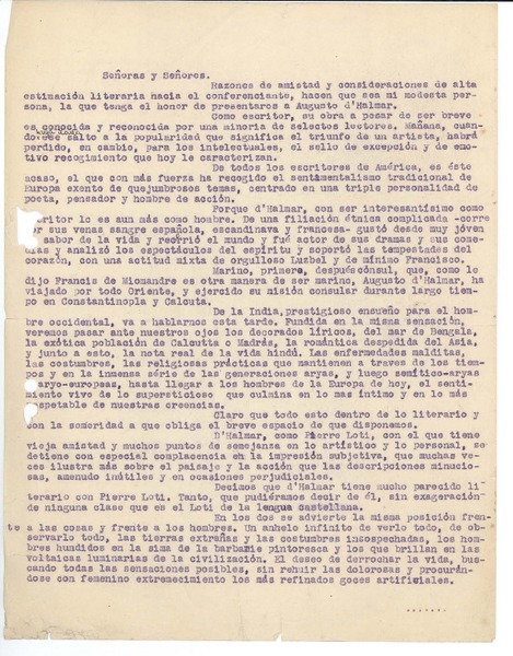 [Presentación de Augusto D'Halmar] [manuscrito]