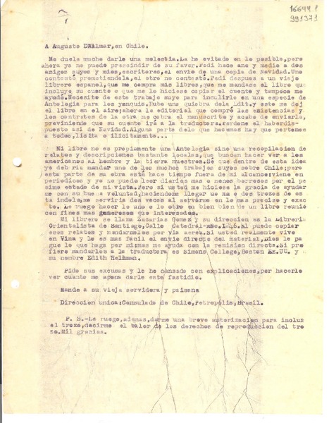Manuscritos chilenos - Correspondencia - D'Halmar, Augusto