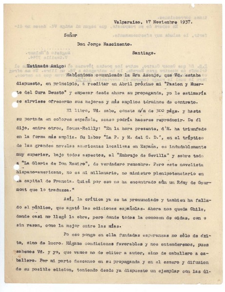 [Carta] 1937 noviembre 17, Valparaíso, Chile [a] Carlos George-Nascimento [manuscrito] Augusto D'Halmar.