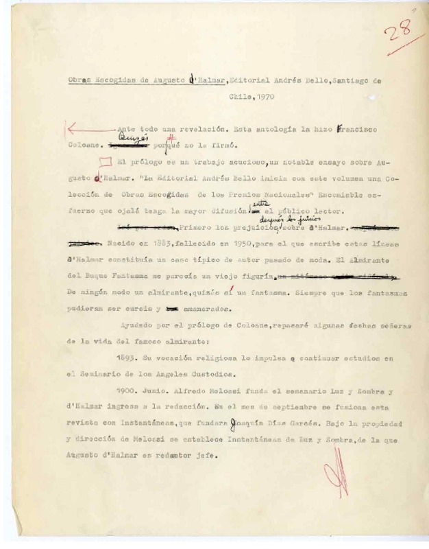 Crítica e interpretación - D'Halmar, Augusto - Manuscritos chilenos