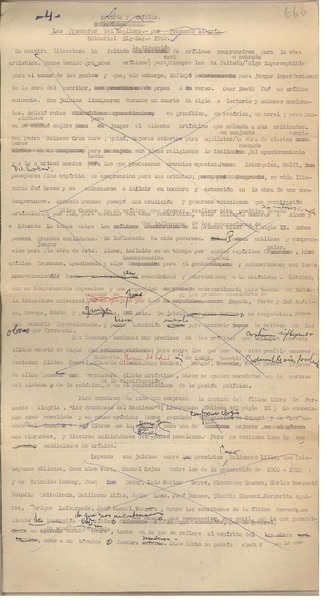 Las fronteras del realismo [manuscrito] Fernando Santiván.