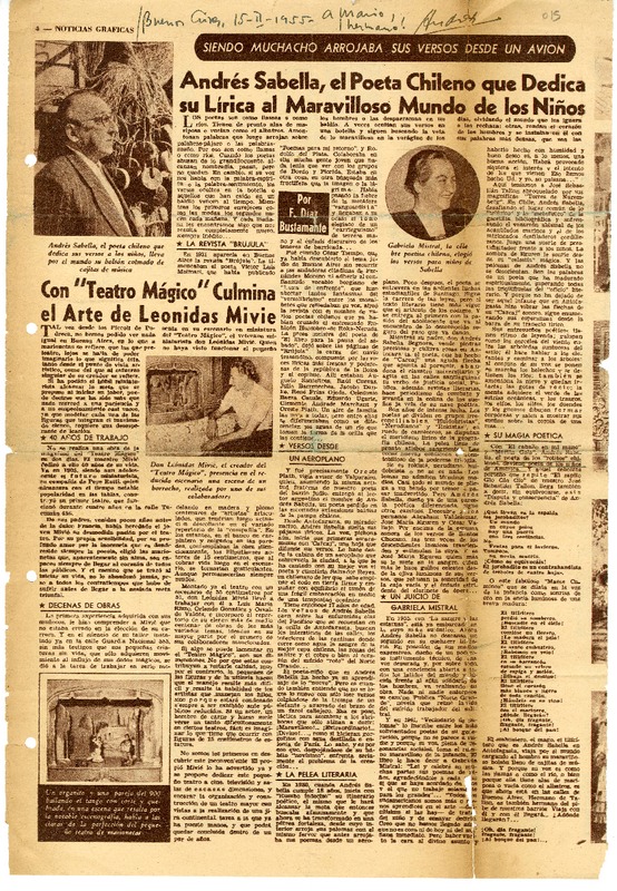 Poetas chilenos - Correspondencia - Manuscritos chilenos - Sabella, Andrés - Ferrero, Mario