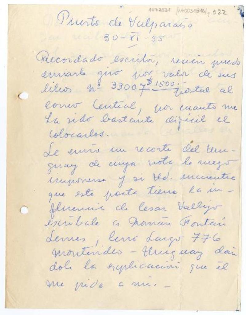 Ferrero, Mario - Correspondencia - Autores chilenos - Manuscritos chilenos - Oyarzún, Luis