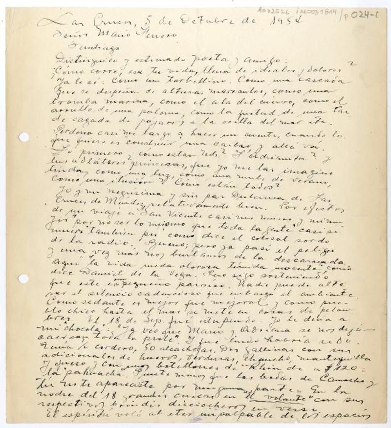 Las Cruces, Chile [a] Mario Ferrero Carta, 1954 octubre 5, [manuscrito] Julio Méndez.