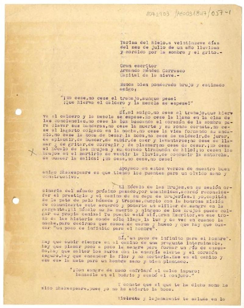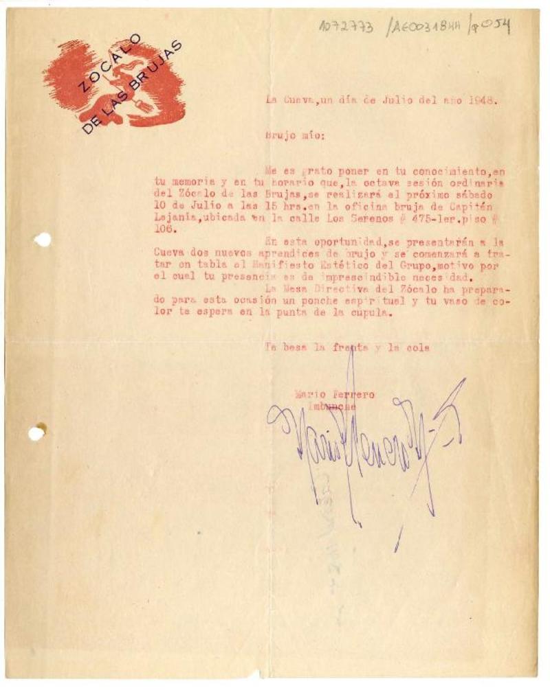 San Sebastián, Chile [al] Brujo Carta, 1948 julio, [manuscrito] Mario Ferrero.
