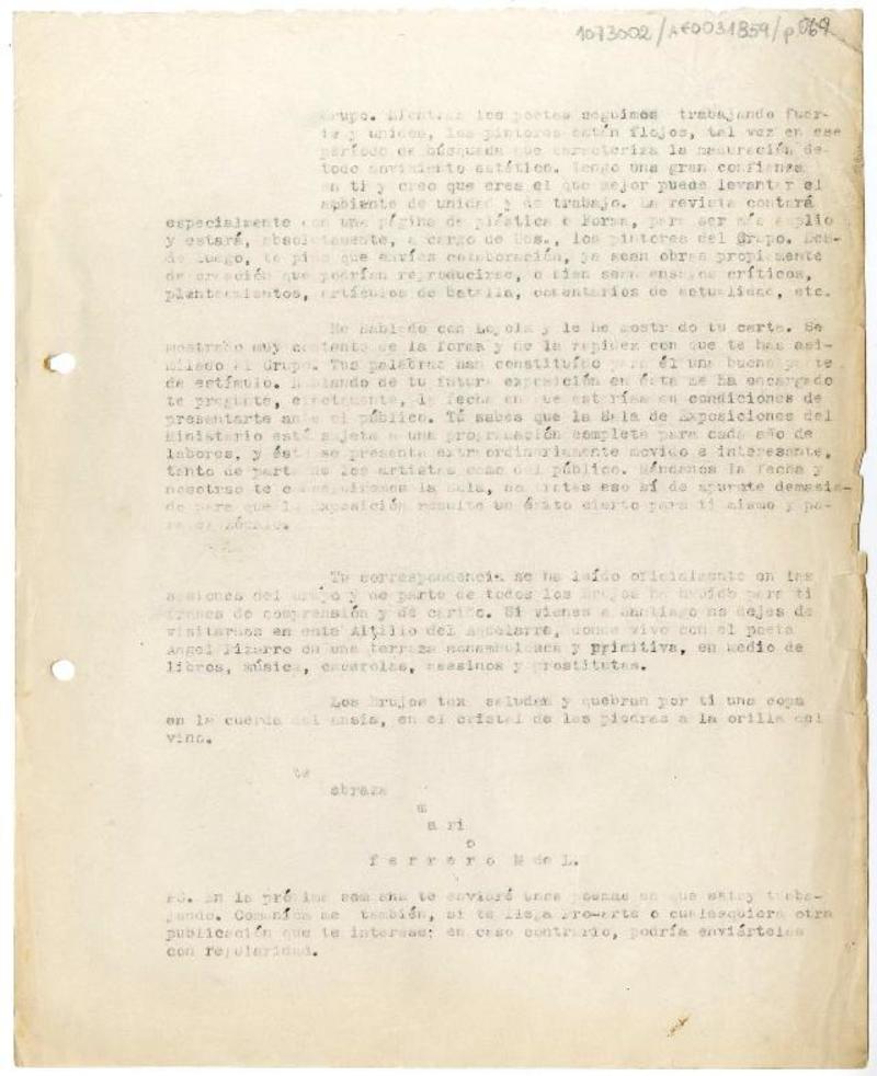 Pizarro, Ángel - Correspondencia - Autores chilenos - Manuscritos chilenos - Ferrero, Mario