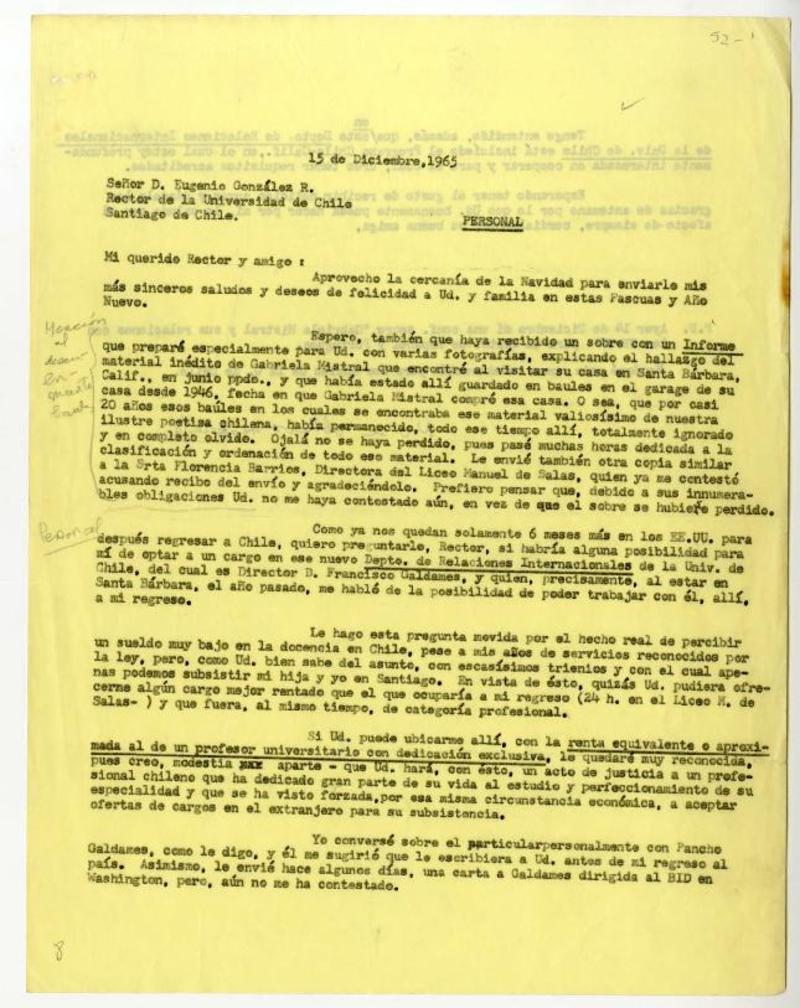 González, Eugenio - Correspondencia - Autores chilenos - Manuscritos chilenos