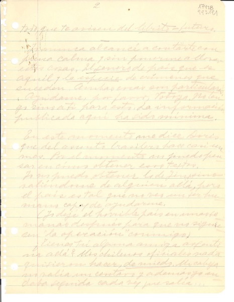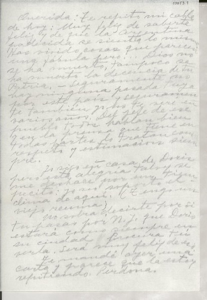 [Recado a Victoria Ocampo en la Argentina] [manuscrito] Gabriela Mistral.
