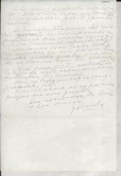 [Carta] 1955 jun. 10, Buenos Aires, [Argentina] [a] Querida Gabriela [manuscrito] Victoria Ocampo.