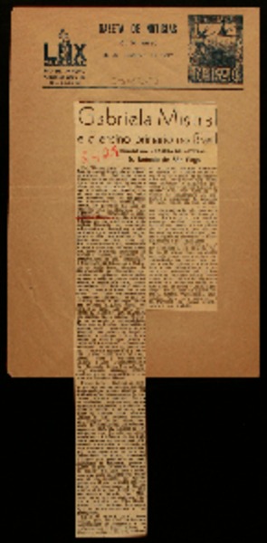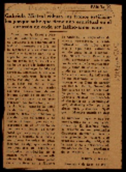 Carta sin estampilla a Gabriela Mistral [artículo] Telmo.