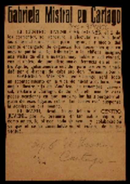 Gabriela Mistral en Cartago, [Costa Rica]. [artículo]