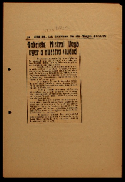 Gabriela Mistral llegó ayer a nuestra ciudad [artículo].