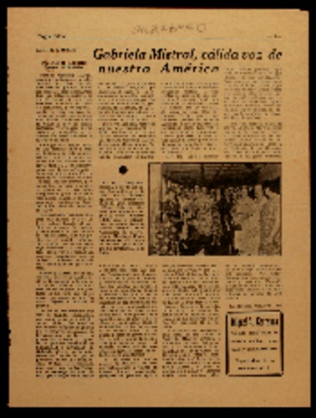 Gabriela Mistral, cálida voz de nuestra América [artículo] por José R. Castro.