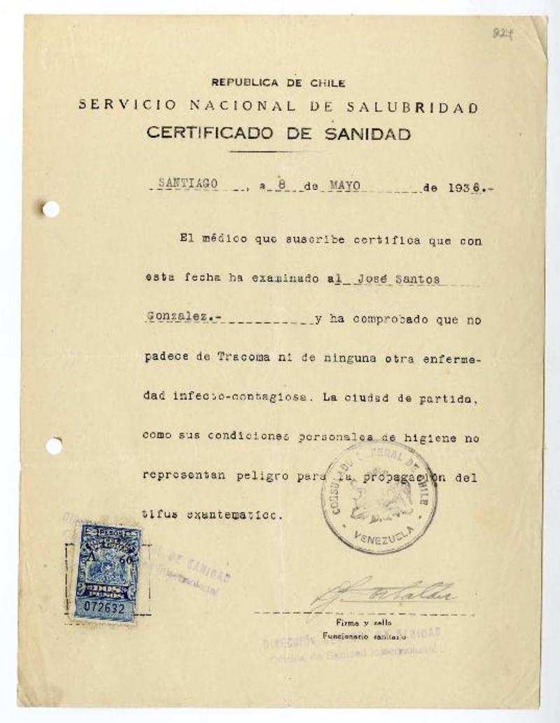 Santiago, Chile [a] José Santos González Vera Certificados, 1938 y 1954, [manuscrito] Varios autores.