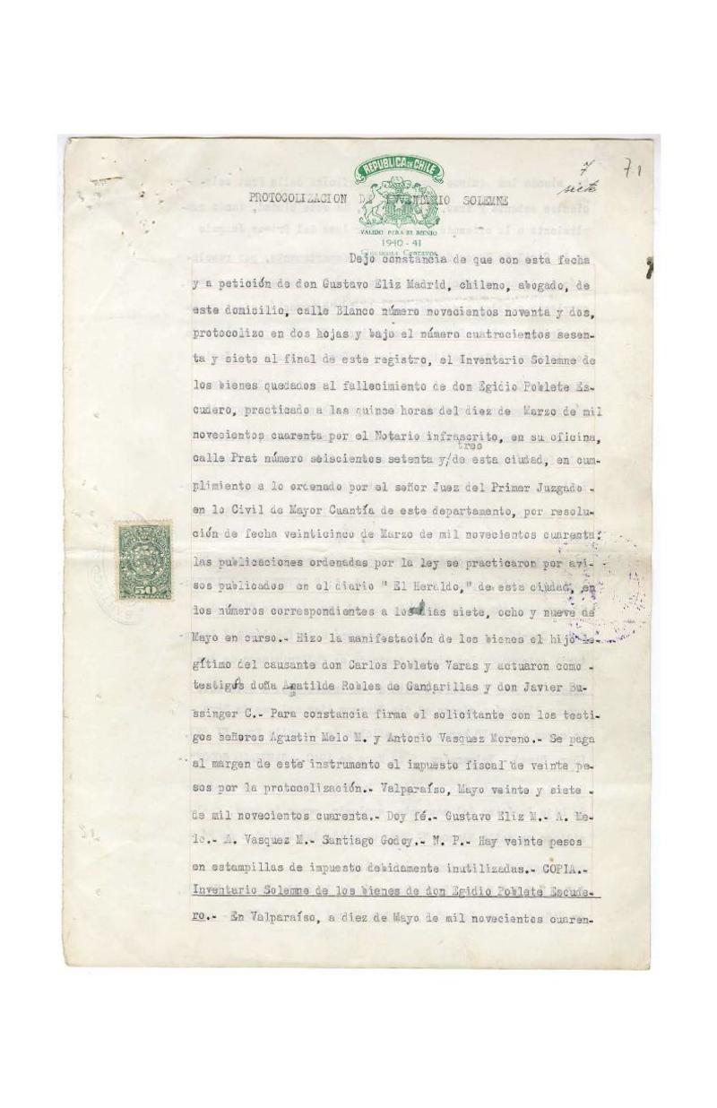 Posesión efectiva - Manuscritos chilenos - Poblete E., Egidio - Instrumentos legales
