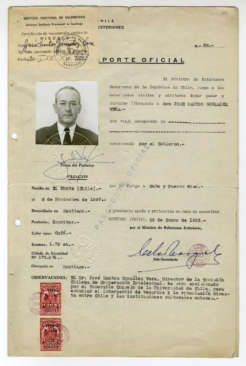 Autores chilenos - González Vera, José Santos - Pasaportes - Manuscritos chilenos