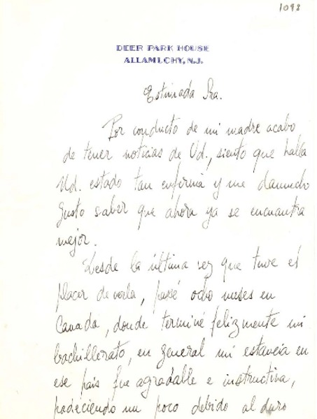 [Telegrama] 1954 feb. 20, Princeton, New Jersey [a] Gabriela Mistral, Roslyn Harbor, Nueva York [manuscrito] Maritain.